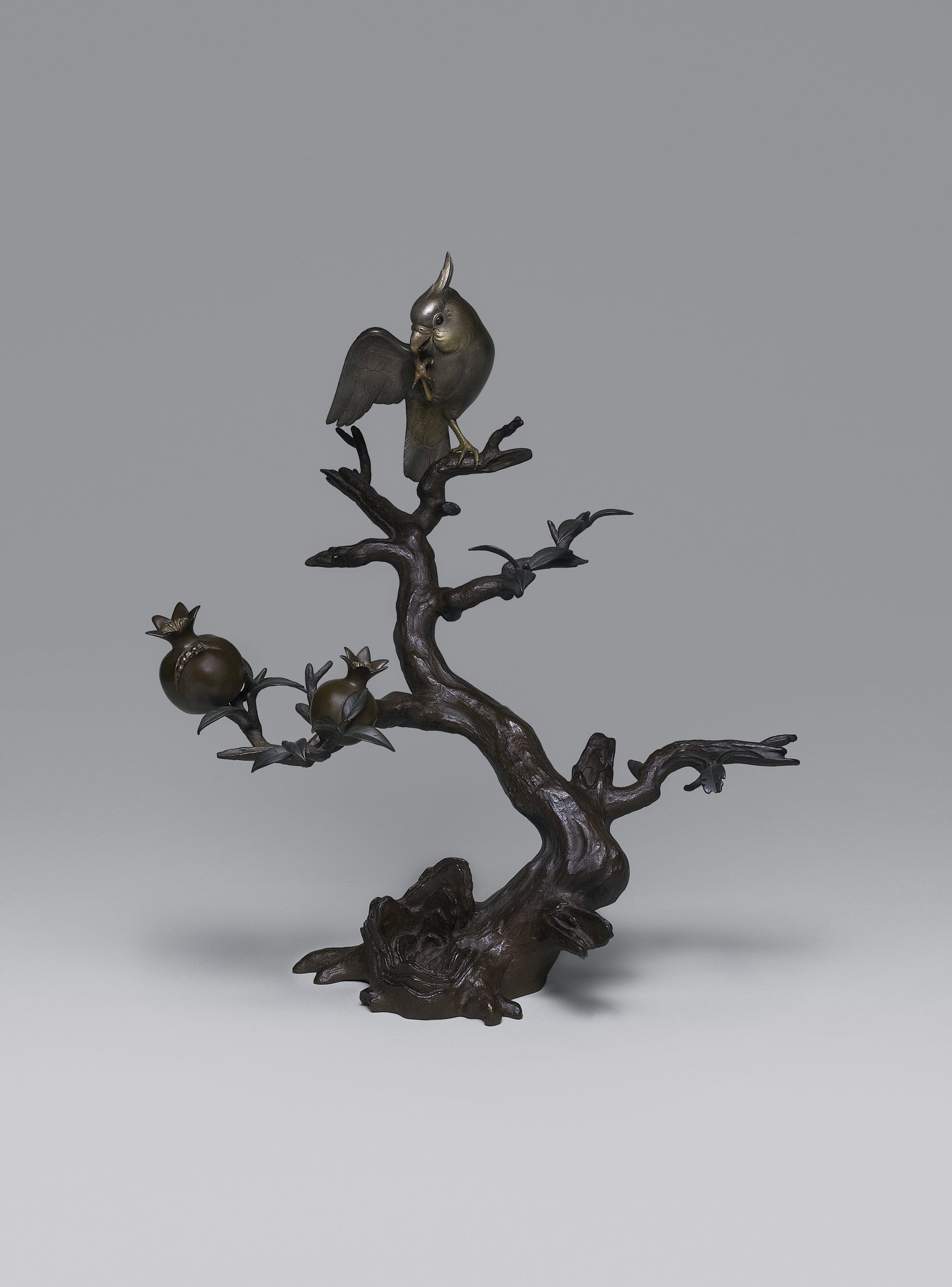 山口昇雲「柘榴にオウム置物」