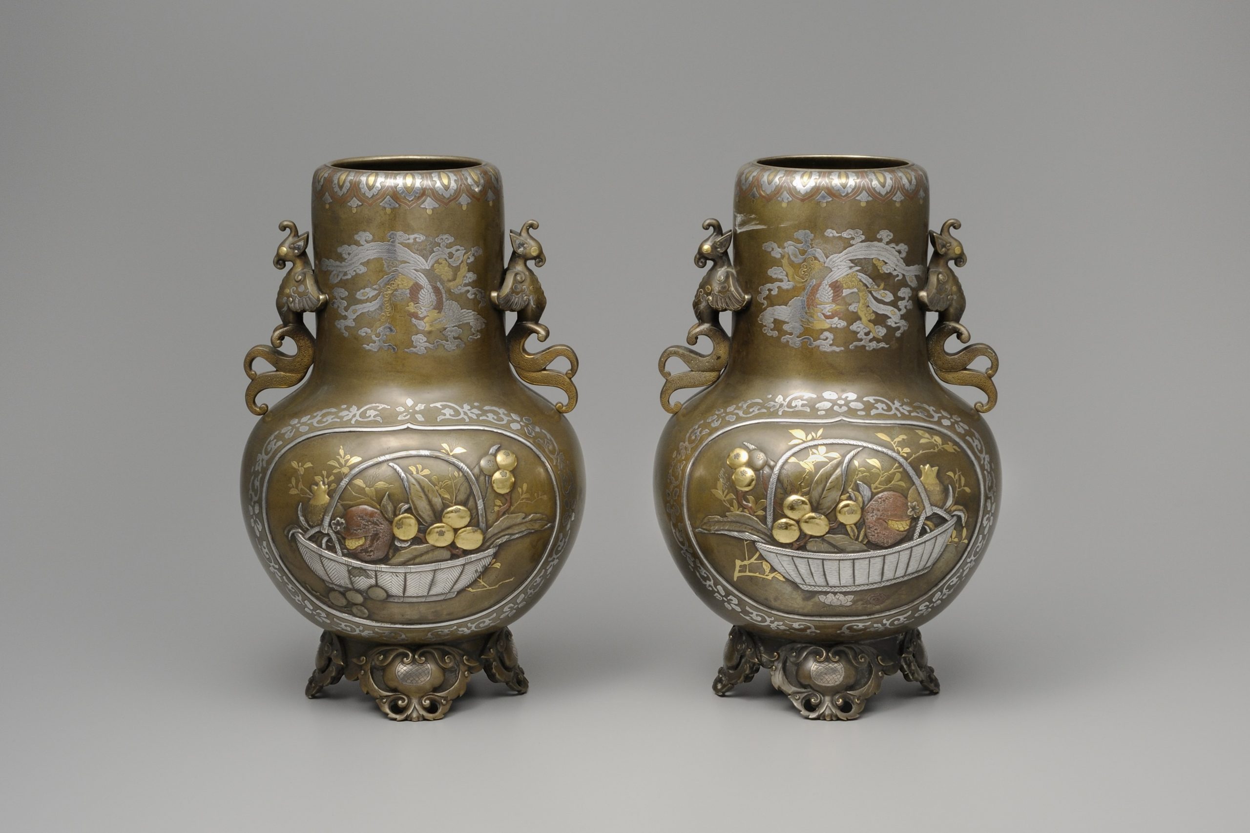 「龍虎麒麟図象嵌香炉」